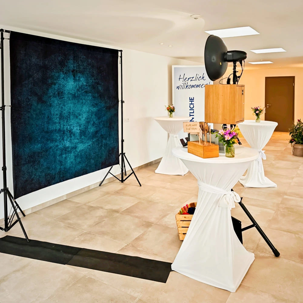 Unser Klassiker „Vintage Blau“ bringt Eleganz und Ruhe in jedes Bild. Das tiefe Blau lässt Gesichter und Outfits besonders gut wirken und sorgt für stilvolle Aufnahmen. Ideal für Hochzeiten, Geburtstage und Business-Events mit klassischem Flair.